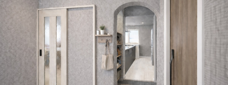 玄関からキッチンに直接アプローチできる最短な「買い物動線」もちろん「たっぷりパントリー」も 併設しており、しかも土間仕上げなので泥の付いたままの物や 水の出る物も安心して置いておけます。