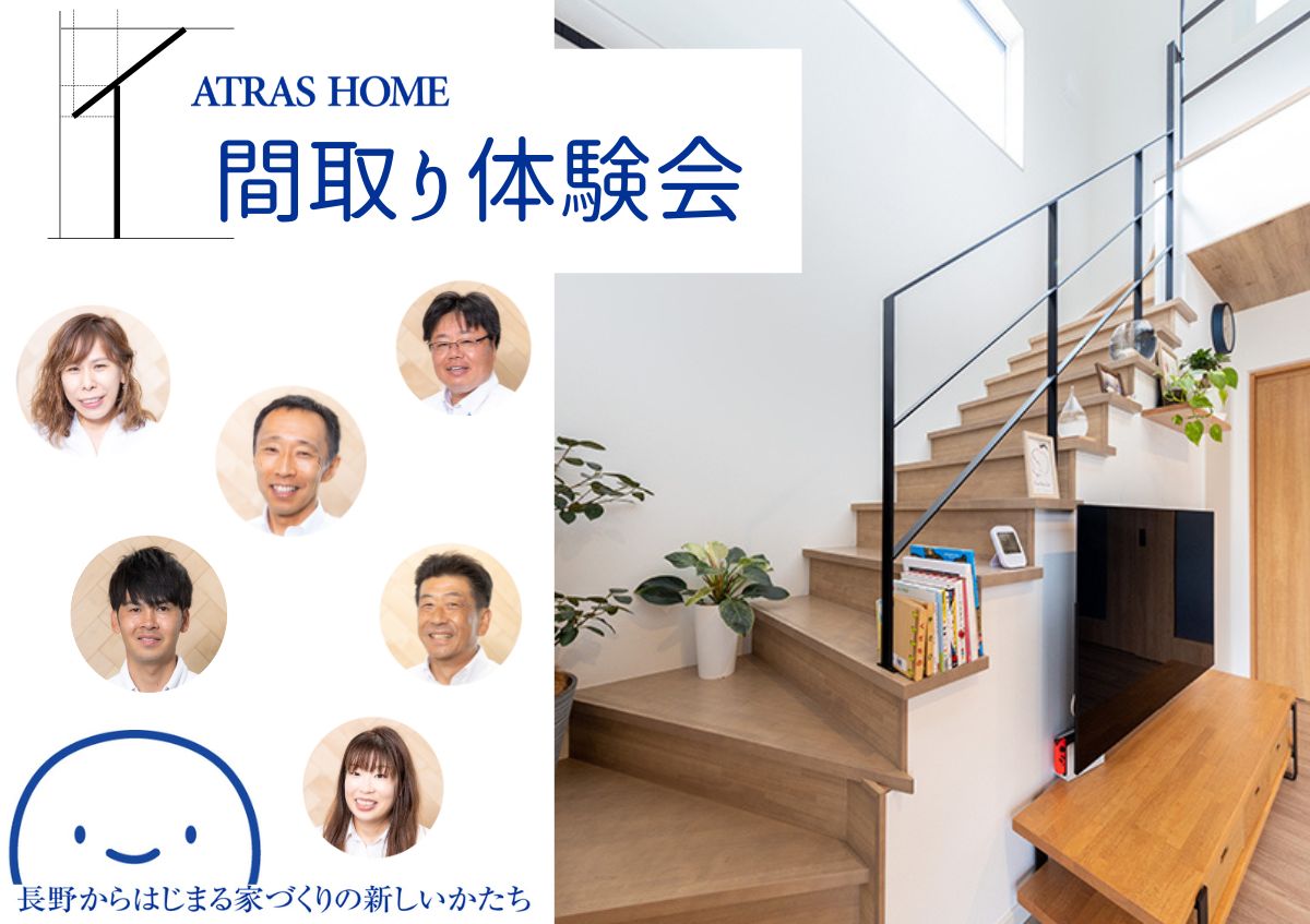 アトラスホームでは、あなたの想いをかたちにまとめるお手伝いをいたします。間取り体験会で、理想の家づくりを楽しみましょう!