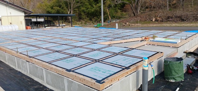 先日、千曲市倉科のO様邸にて、住まいづくりの重要な一歩となる「土台敷き」を行いました。