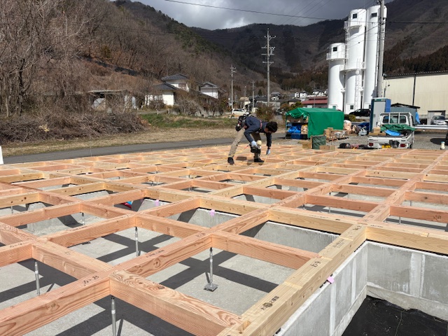 先日、千曲市倉科のO様邸にて、住まいづくりの重要な一歩となる「土台敷き」を行いました。