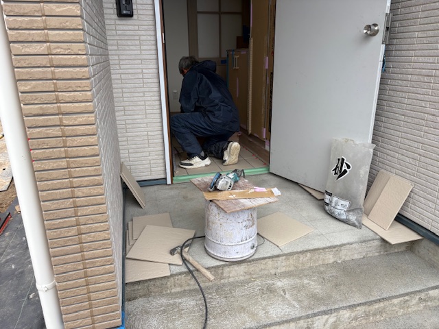 現場では、内装の細かなチェックから玄関タイルの施工まで、各職人さんが一丸となって最後の磨き上げを行っています。