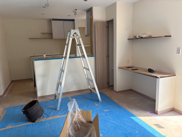 千曲市磯部のM様邸では、いよいよ工事も大詰め、「仕上げ工事」の真っ最中です。