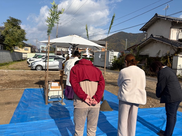先日は、千曲市磯部にて、お客様の夢を形にする第一歩、地鎮祭を執り行いました。