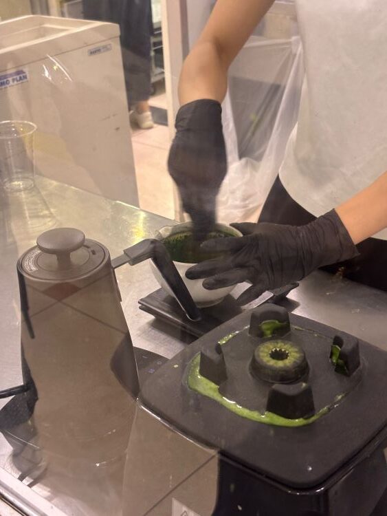 もうひとつ、会場でひと際注目を集めていたのが、京都発の本格日本茶スタンド「八十八良葉舎」です。注文を受けてから目の前で抹茶を点てるライブ感があり、茶筅のリズムと立ちのぼる香りに思わず足を止めてしまいます。