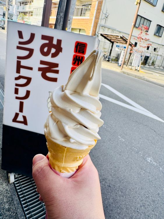 この日は気になっていた「みそソフト」をいただきました。ひと口目で感じるのは、やさしい甘さにほんのり味噌のコクが重なる不思議なバランスです。塩気は控えめで、キャラメルのような香ばしさが後からふわっとやってきます。ミルクのコクを邪魔しない程度の味噌感なので、食べやすくてスプーンが止まりません。口どけはなめらかで、後味が重くないのも好印象です。味噌の発酵の丸みが甘さを引き締めてくれるおかげで、最後まで飽きずにペロリといけます。観光の途中で立ち寄って、少し歩きながら食べるのにもぴったりです。