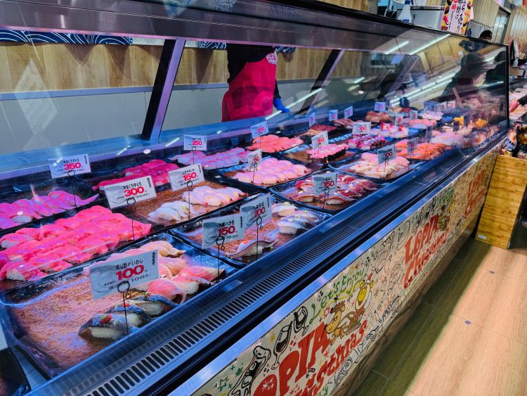 さらに1貫売りのお寿司コーナーもあって、好きなネタをバイキング感覚で選べるのが新鮮でした。帰ってからおうち寿司パーティーにするのも良いですね。