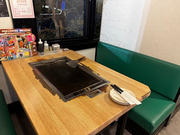 店内はファミリーも友人同士も過ごしやすい明るい雰囲気で、換気や油はね対策も配慮されていて快適に食事ができます。焼き上がりまでの待ち時間も、音や香り、目の前の“調理する楽しさ”があるので退屈しません。