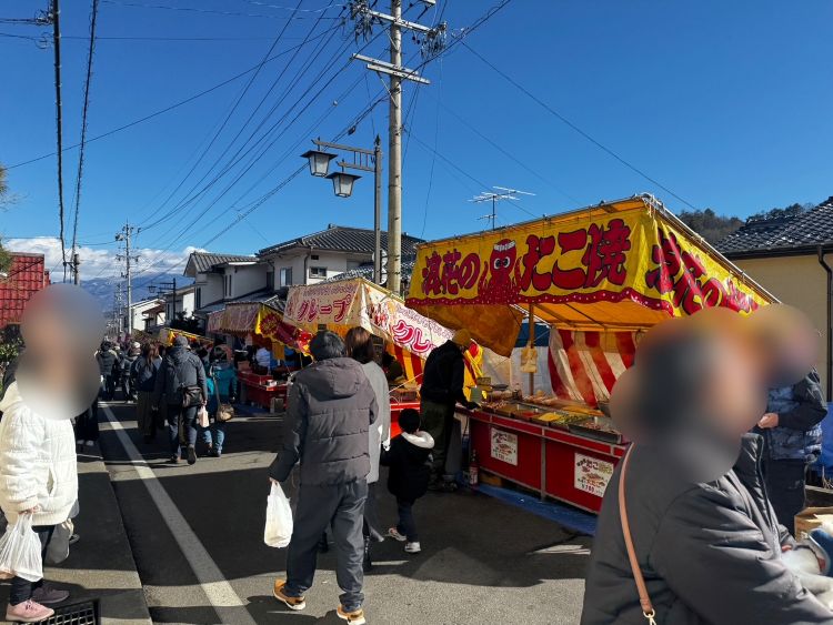 お参りをすませた後は、出店をのぞくのも楽しみです。からあげの美味しいにおいに吸い寄せられてから揚げを頬張り、お腹を満たしました。たこ焼きやイカ焼きの香りも魅力的で、完全に子ども気分です。