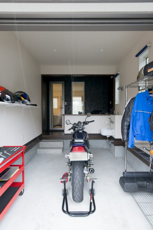 DIYの作業や自転車・バイクのメンテナンスは、室内だと汚れや音が気になりがち。タイルや土間で仕上げるとその心配を手放して、思い切り作業に没頭できます。工具を広げても気兼ねなく、好きな時に好きなだけ手を動かせる“自分だけの作業基地”。